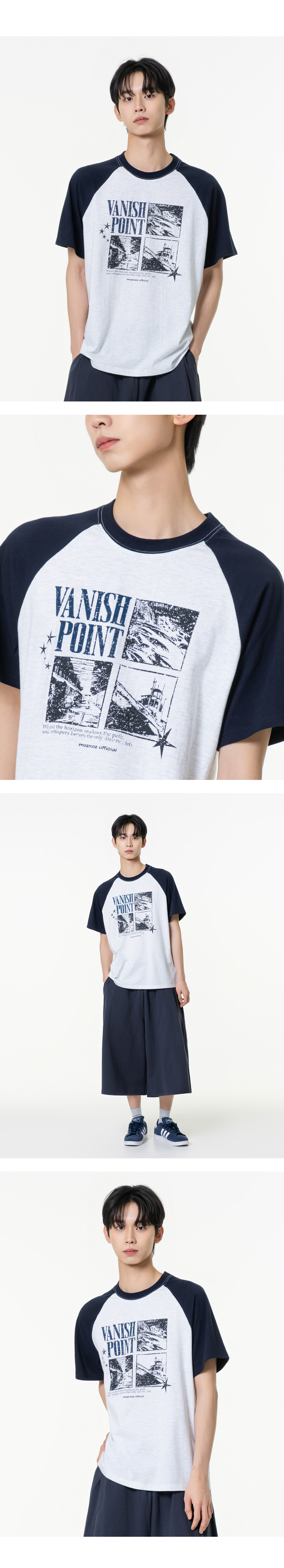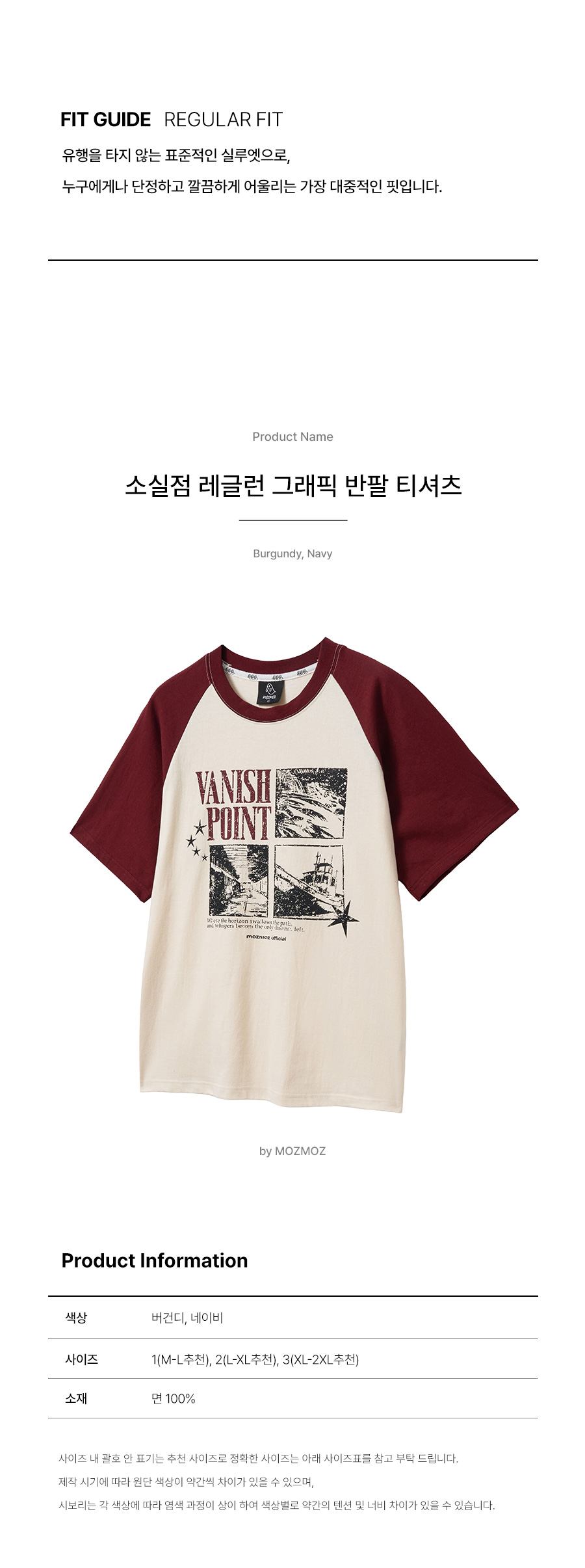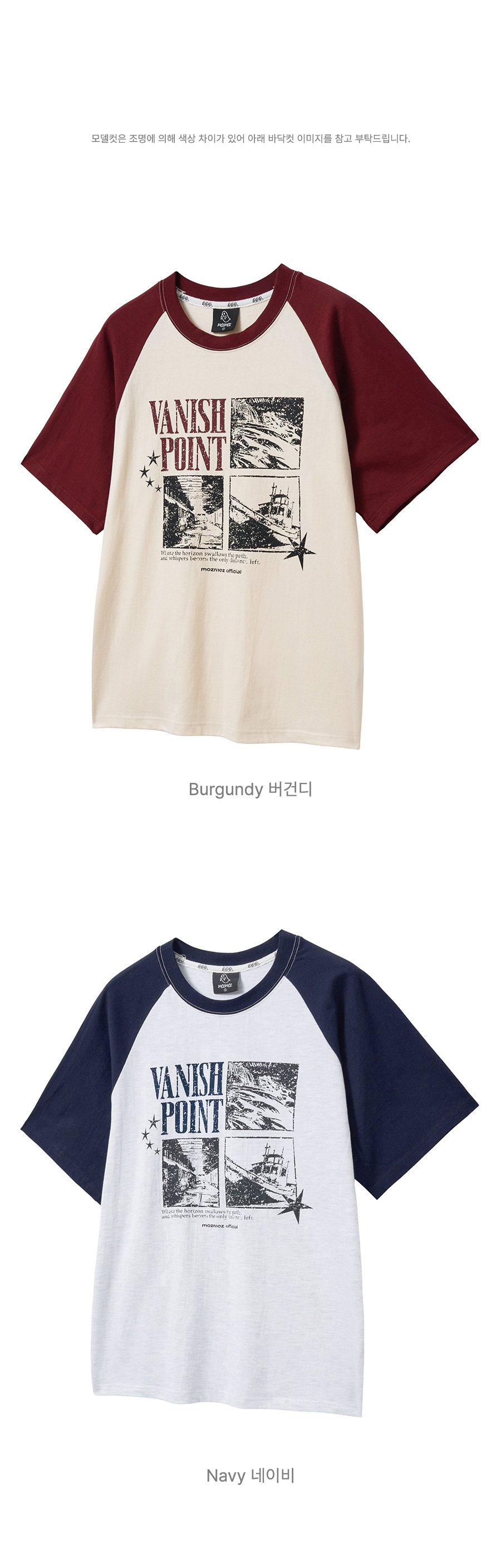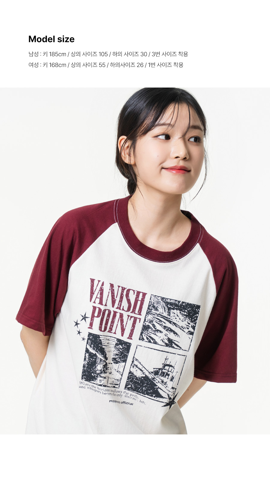 소실점 레글런 그래픽 반팔 티셔츠 버건디
