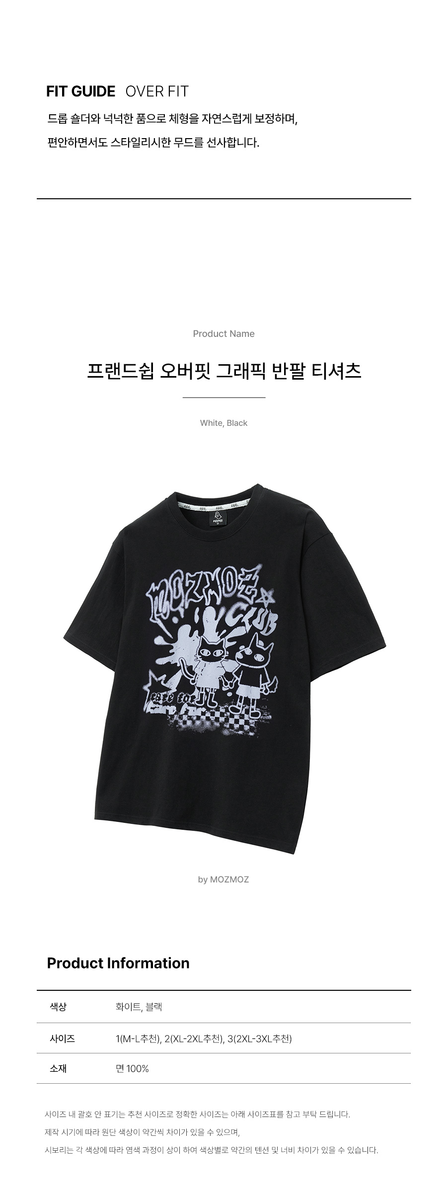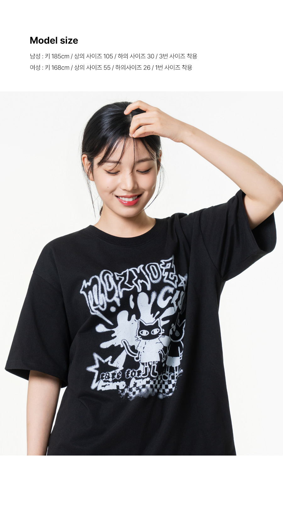 프랜드쉽 오버핏 그래픽 반팔티셔츠 블랙