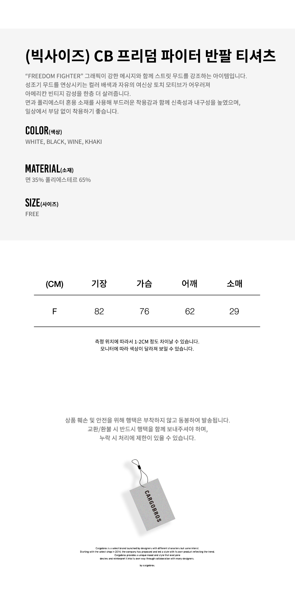 | 교환 / 반품 주소 | 서울 송파구 석촌동 2-7 2층 웍스바이_카고브로스 |