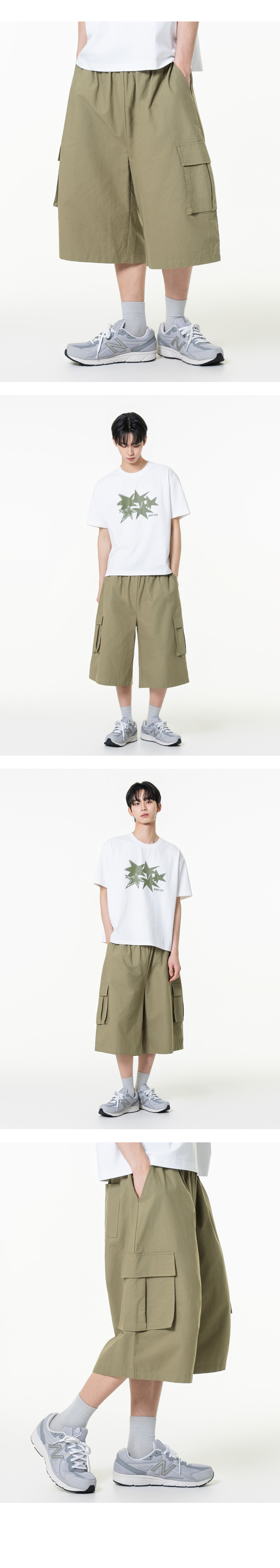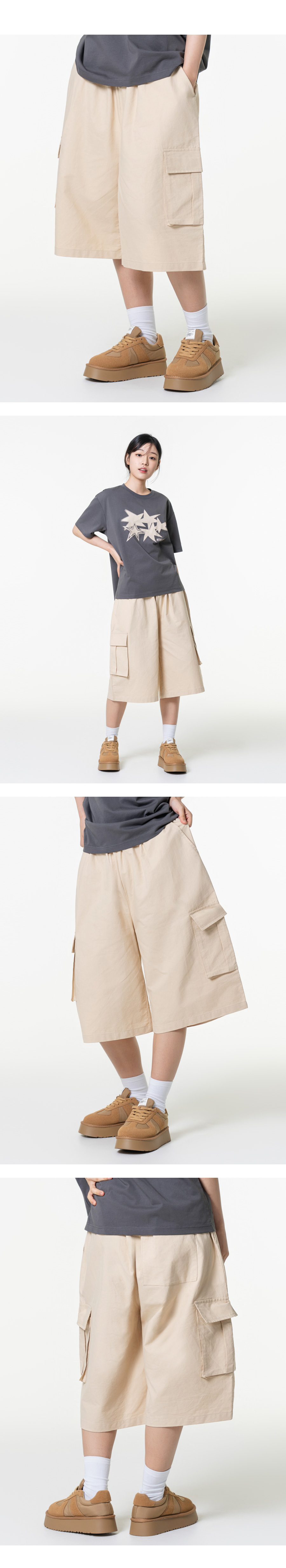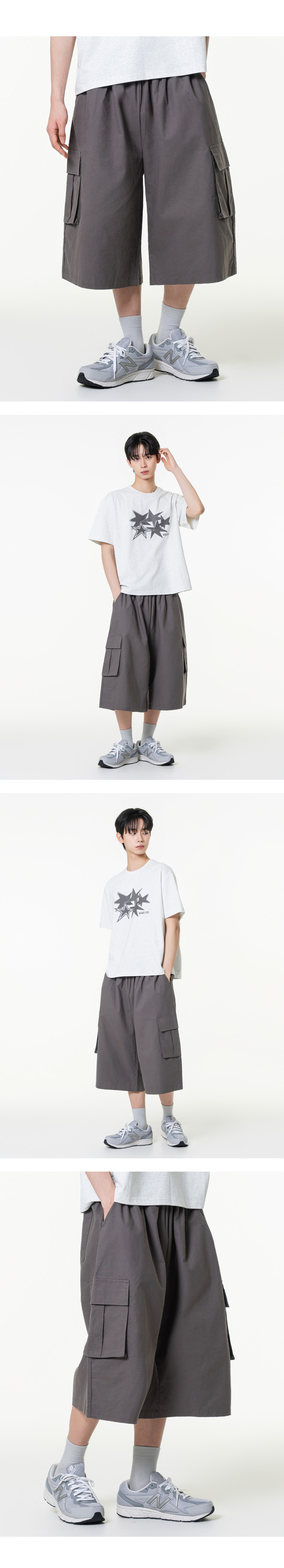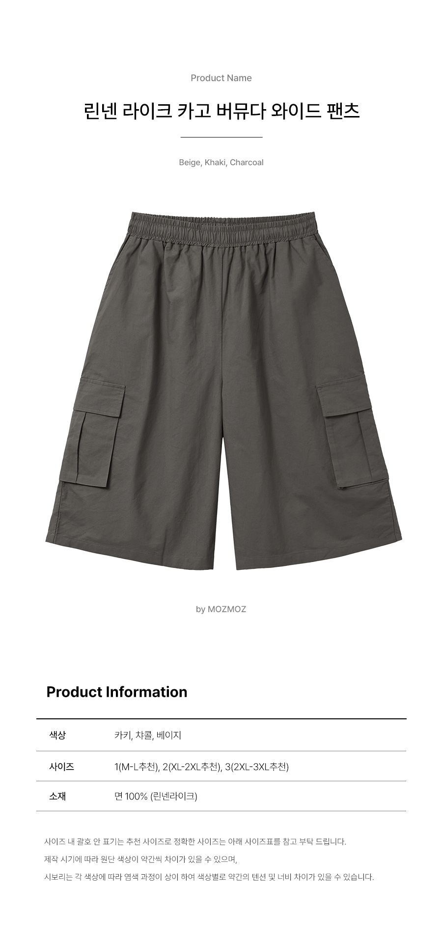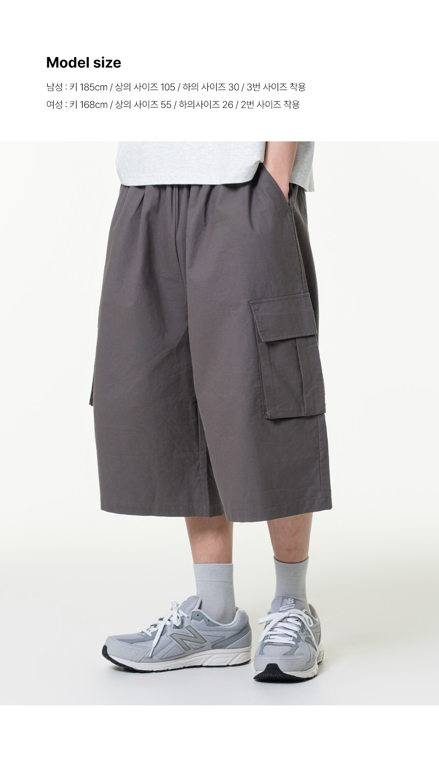 린넨라이크 카고 버뮤다 와이드 팬츠 챠콜
