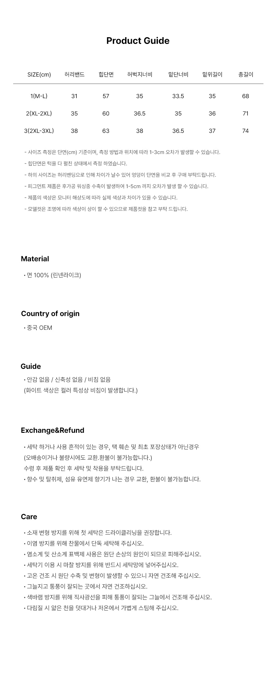 - 사이즈는 측정방법에 따라 1~3cm 정도의 오차가 있을 수 있습니다.
