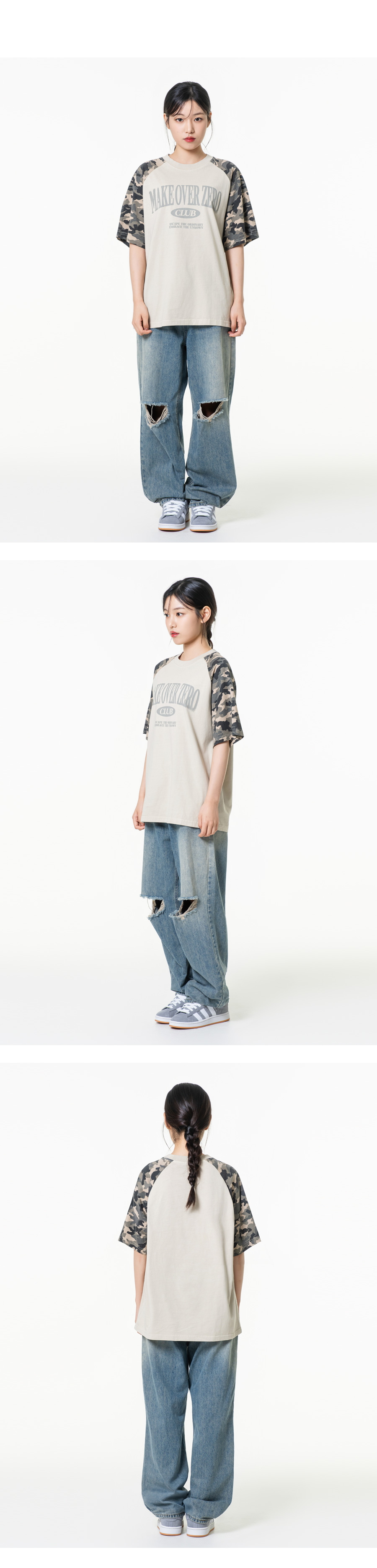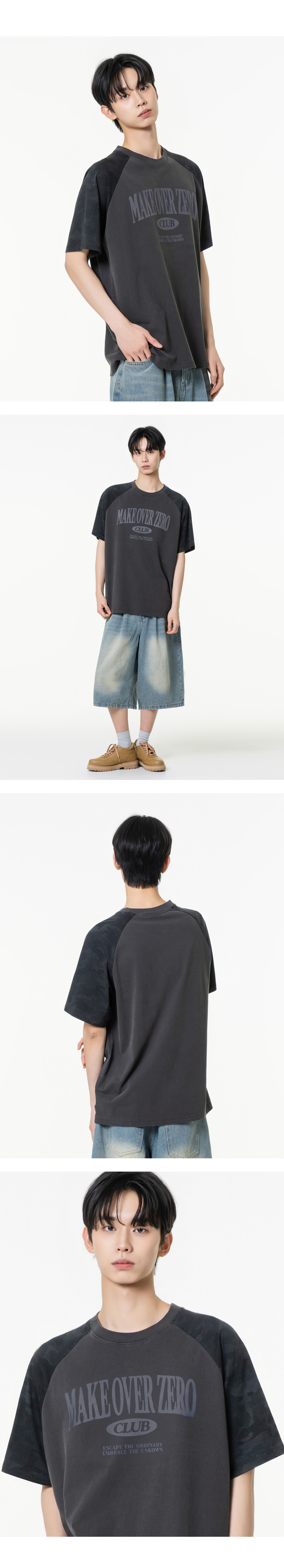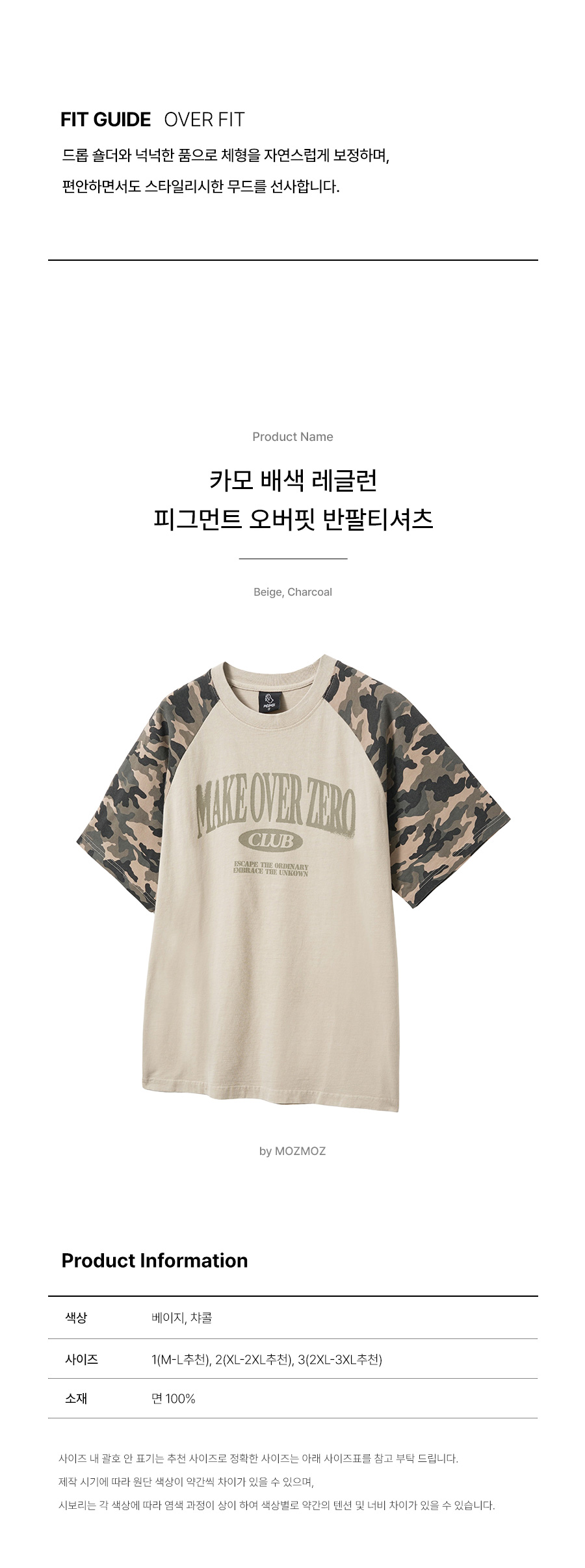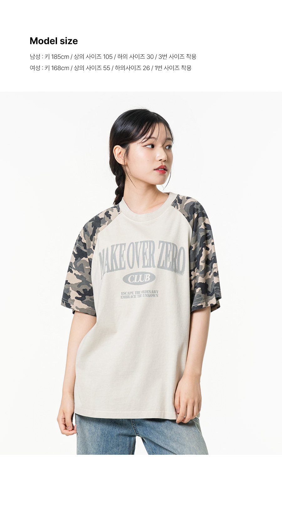 카모 배색 레글런 피그먼트 오버핏 반팔티셔츠 베이지