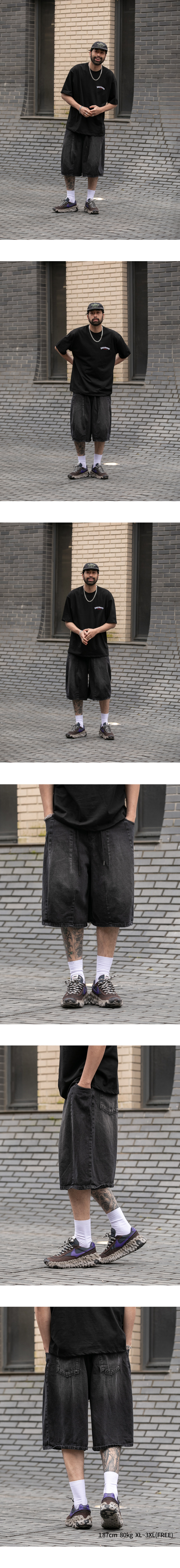 ⦁ 벌룬 실루엣이 돋보이는 버뮤다 데님팬츠입니다