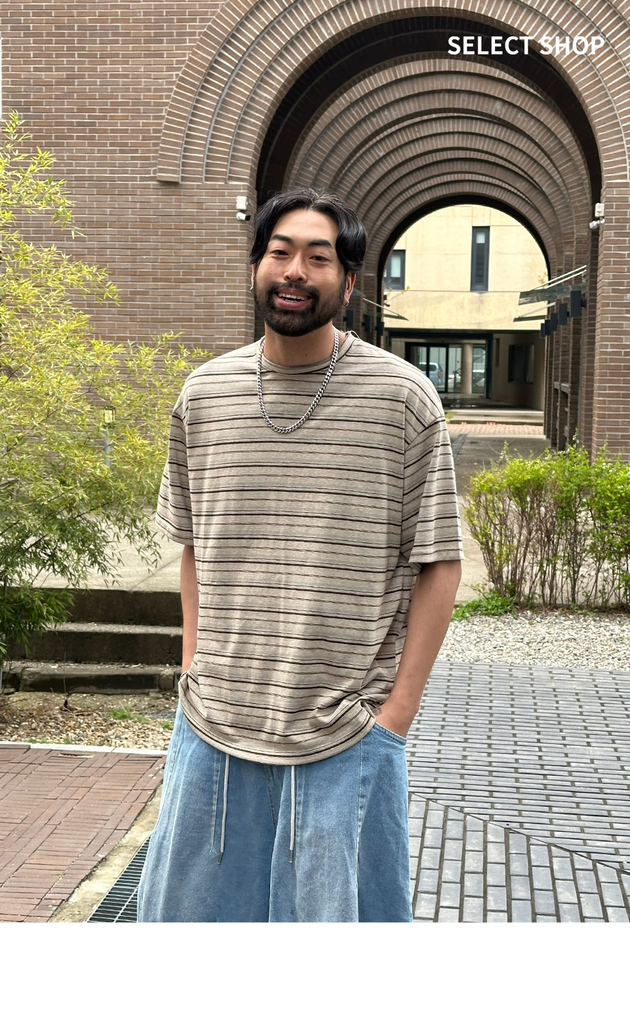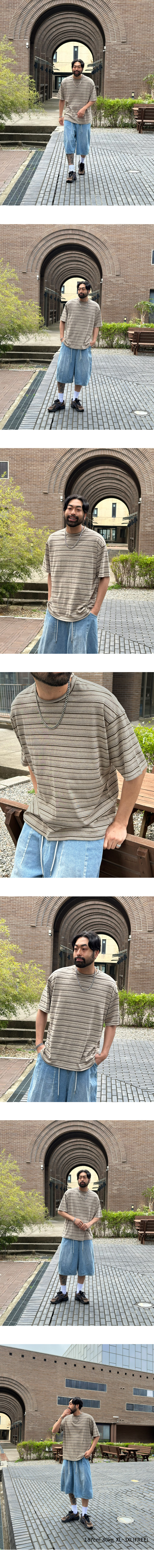 ⦁ 디자인 : 멀티 스트라이프 패턴이 레트로한 감성을 연출하는 단가라 반팔티