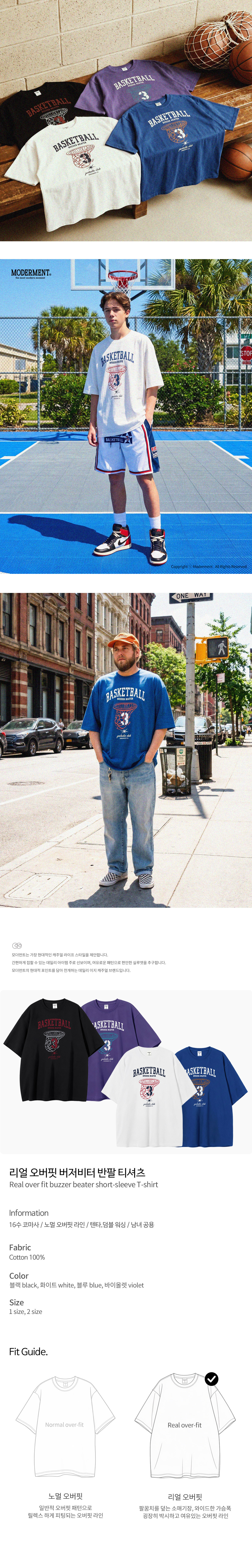 리얼오버핏 버저비터 반팔 티셔츠 [4컬러]